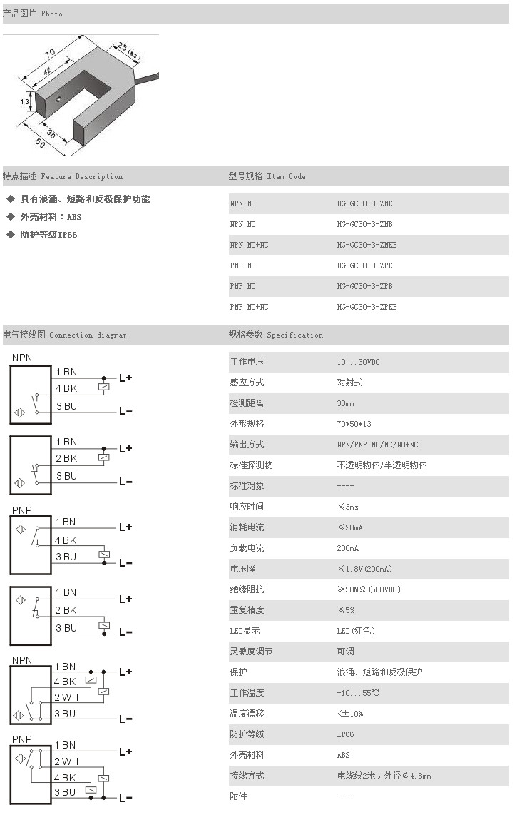 槽型光電開關/傳感器 HG-GC30-3-ZNK,HG-GC30-3-ZNB,HG-GC30-3-ZNKB,HG-GC30-3-ZPK,HG-GC30-3-ZPB,HG-GC30-3-ZPKB |
