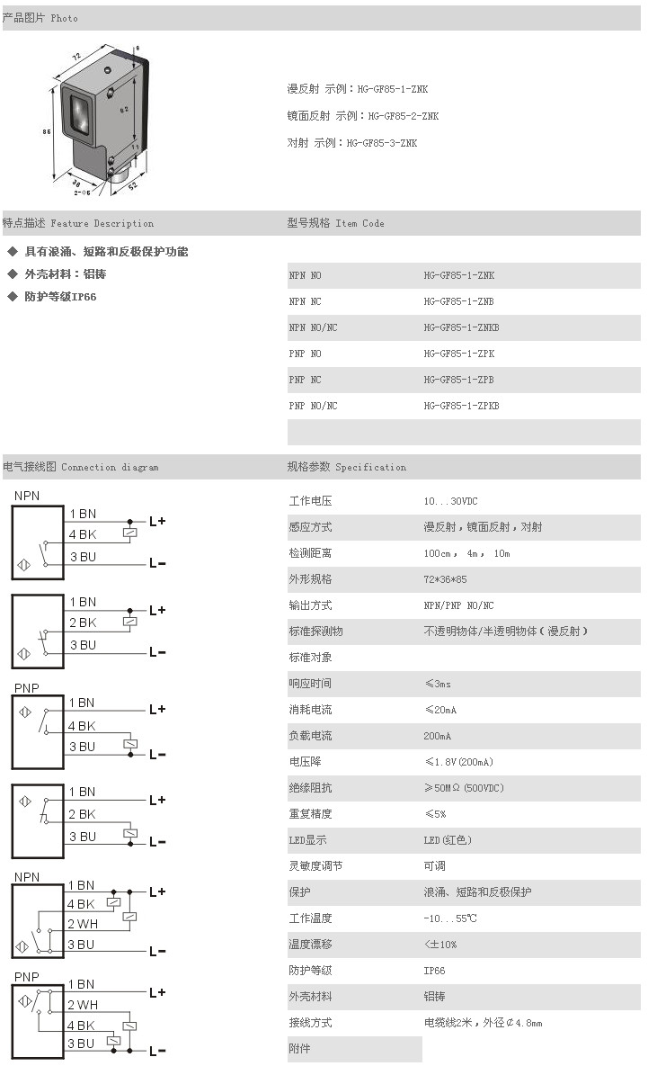 方型光電開關/傳感器 HG-GF85-1-ZNK,HG-GF85-1-ZNB,HG-GF85-1-ZNKB,HG-GF85-1-ZPK,HG-GF85-1-ZPB,HG-GF85-1-ZPKB, |