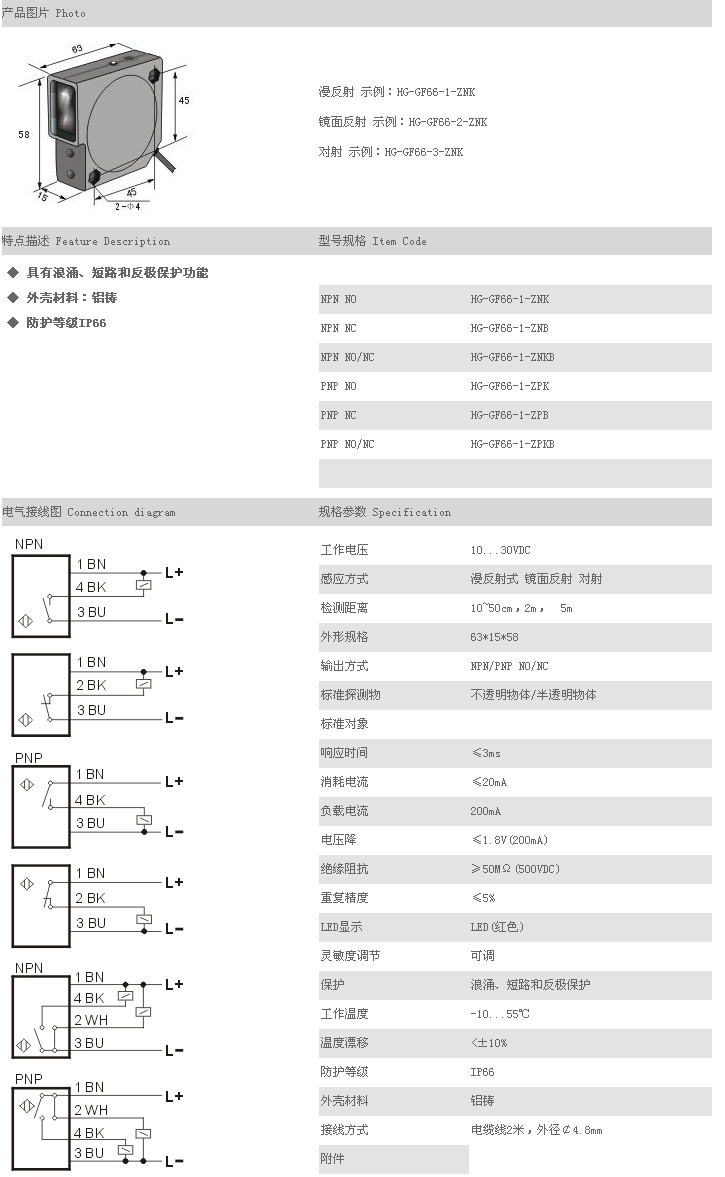 方型光電開關(guān)/傳感器 HG-GF66-1-ZNK,HG-GF66-1-ZNB,HG-GF66-1-ZNKB,HG-GF66-1-ZPK,HG-GF66-1-ZPB,HG-GF66-1-ZPKB, |