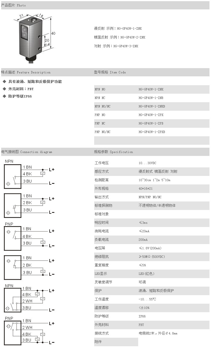 /傳感器 HG-GF40W-1-ZNK,HG-GF40W-1-ZNB,HG-GF40W-1-ZNKB,HG-GF40W-1-ZPK,