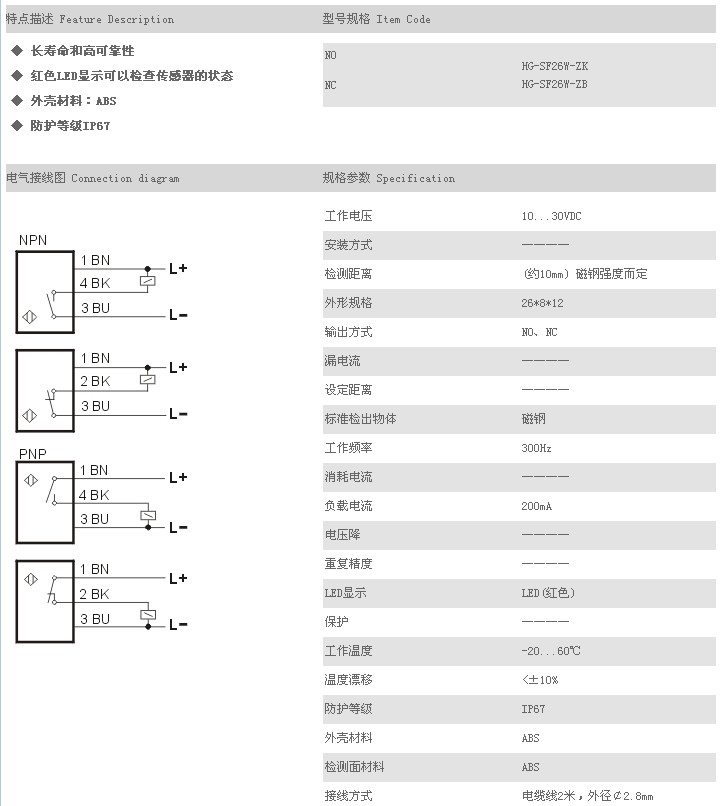 普通型磁性開關(guān) HG-SF26W-ZK,HG-SF26W-ZB,