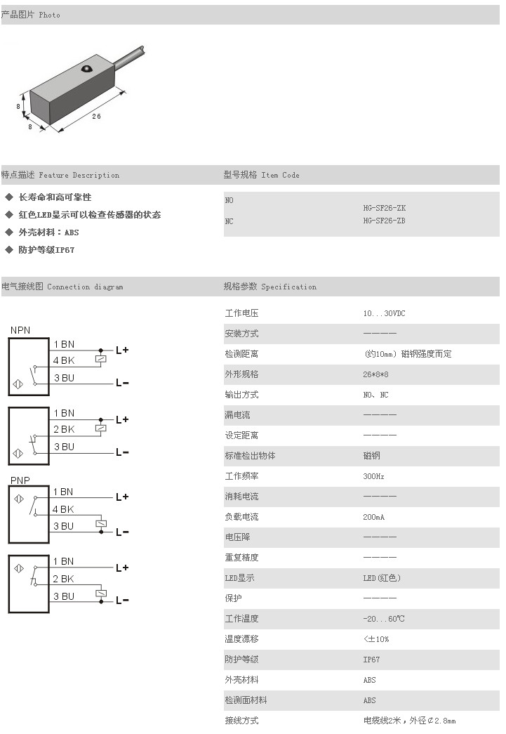 普通型磁性開(kāi)關(guān) HG-SF26-ZK,HG-SF26-ZB,