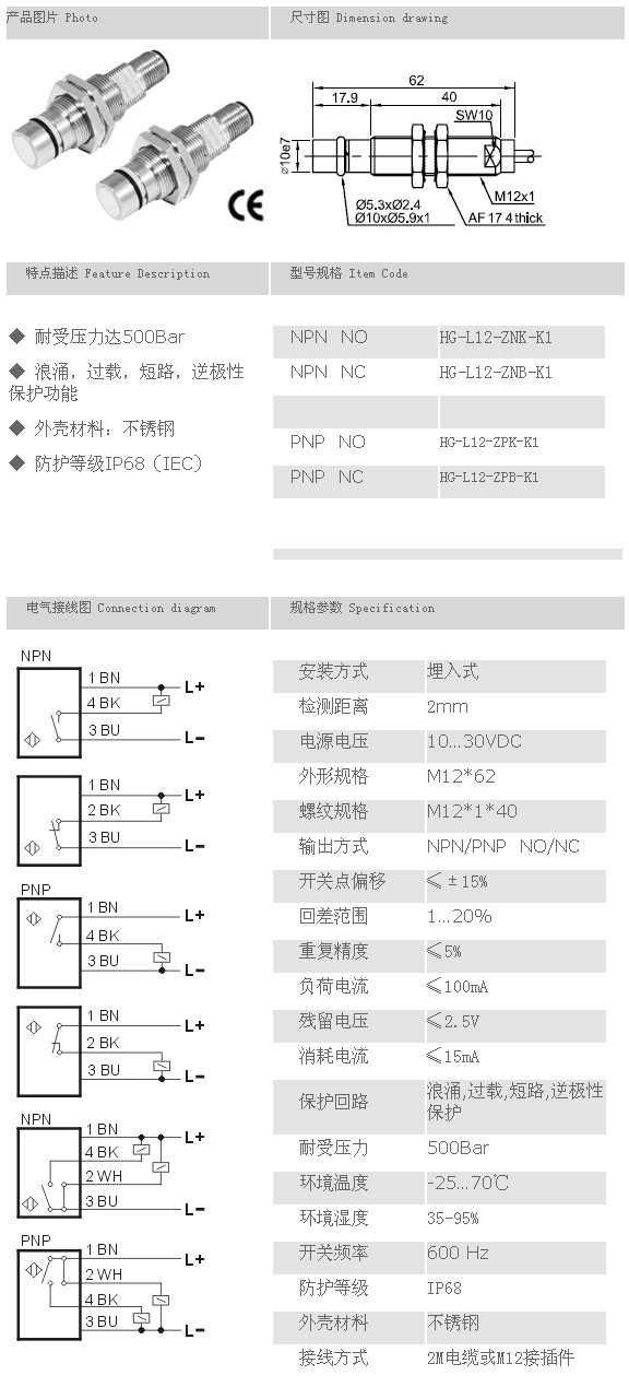 耐高壓接近開關(guān)傳感器 HG-L12-ZNK-K1,HG-L12-ZNB-K1,HG-L12-ZPK-K1,HG-L12-ZPB-K1,