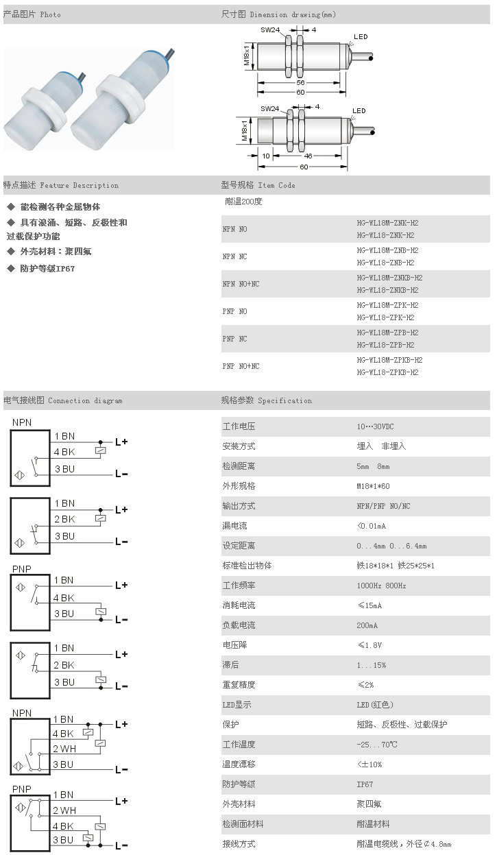 耐高溫接近開關(guān)(低溫) HG-WL18M-ZNK-H2,HG-WL18-ZNK-H2,HG-WL18M-ZNB-H2,HG-WL18-ZNB-H2