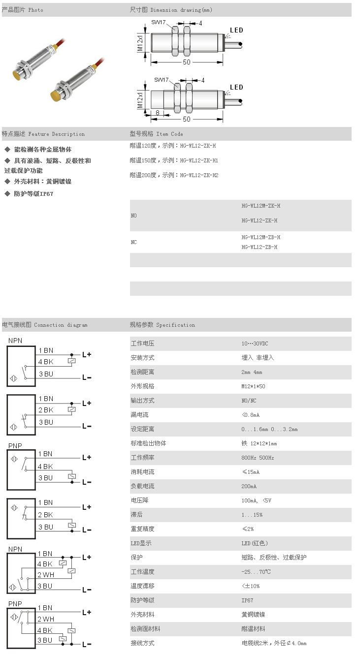 耐高溫接近開(kāi)關(guān)(低溫) HG-WL12M-ZK-H,HG-WL12-ZK-H,HG-WL12M-ZB-H,HG-WL12-ZB-H,