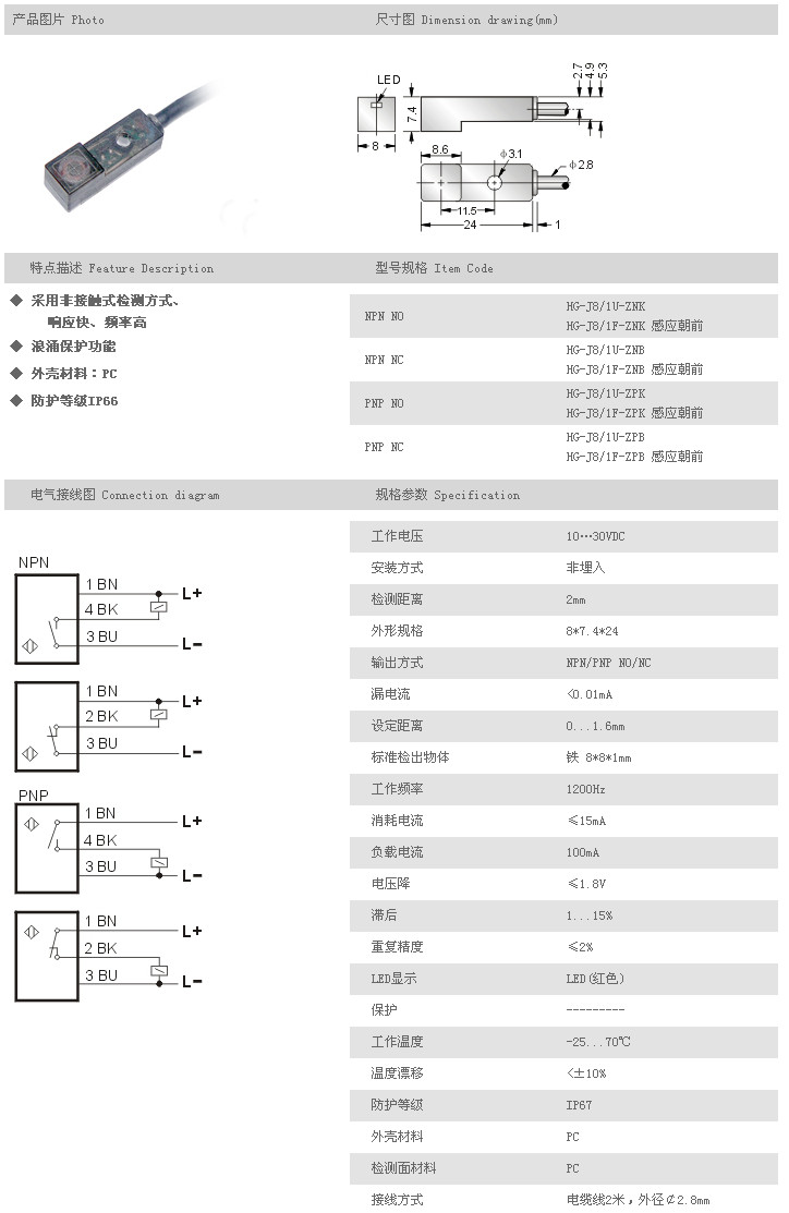 超小型接近開關(guān) HG-J8/1U-ZNK,HG-J8/1F-ZNK,HG-J8/1U-ZNB,HG-J8/1F-ZNB,HG-J8/1U-ZPK,HG-J8/1F-ZPK,HG-J8/1U-ZPB,HG-J8/1F-ZPB,