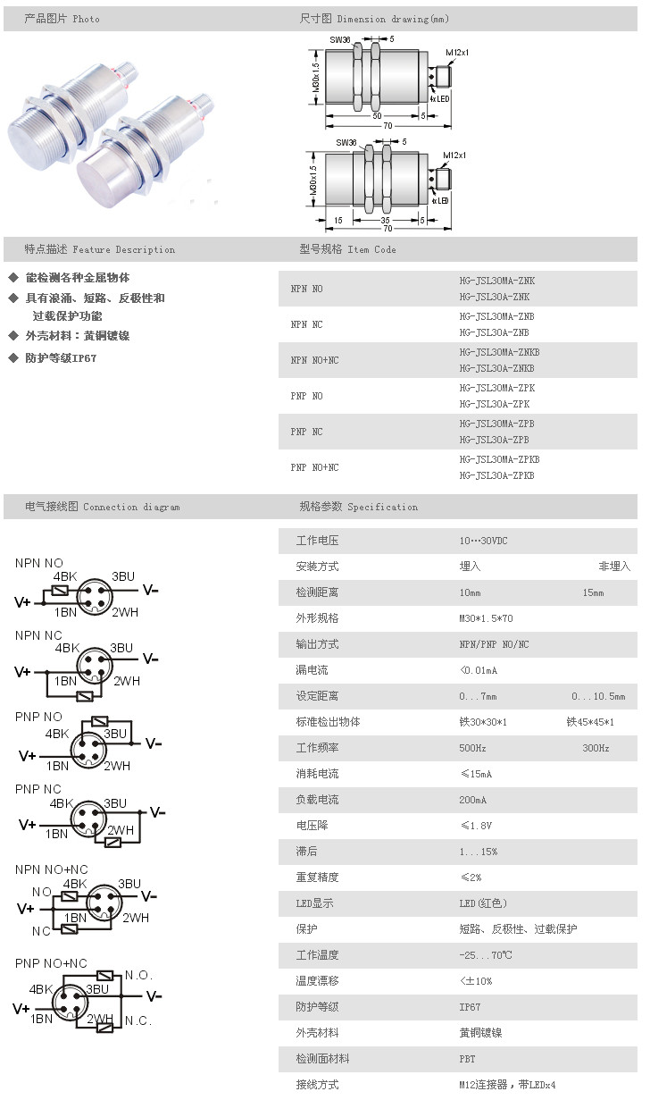 金屬探頭型接近開關(guān) HG-JSL30MA-ZNK,HG-JSL30A-ZNK,HG-JSL30MA-ZNB,HG-JSL30A-ZNB,