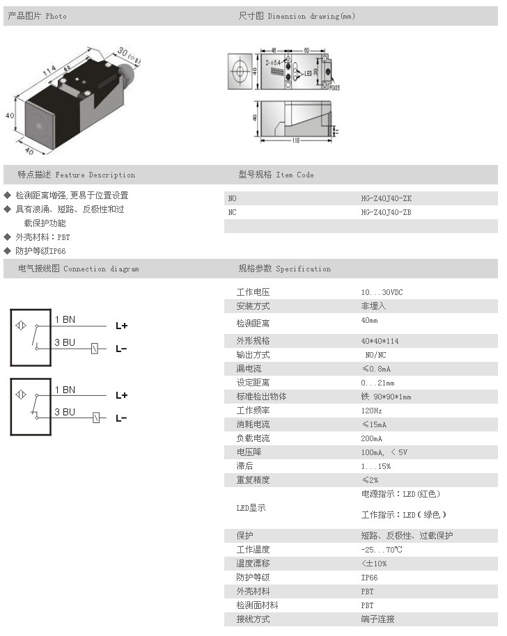 遠(yuǎn)距離型接近開關(guān) HG-Z40J40-ZK,HG-Z40J40-ZB,
