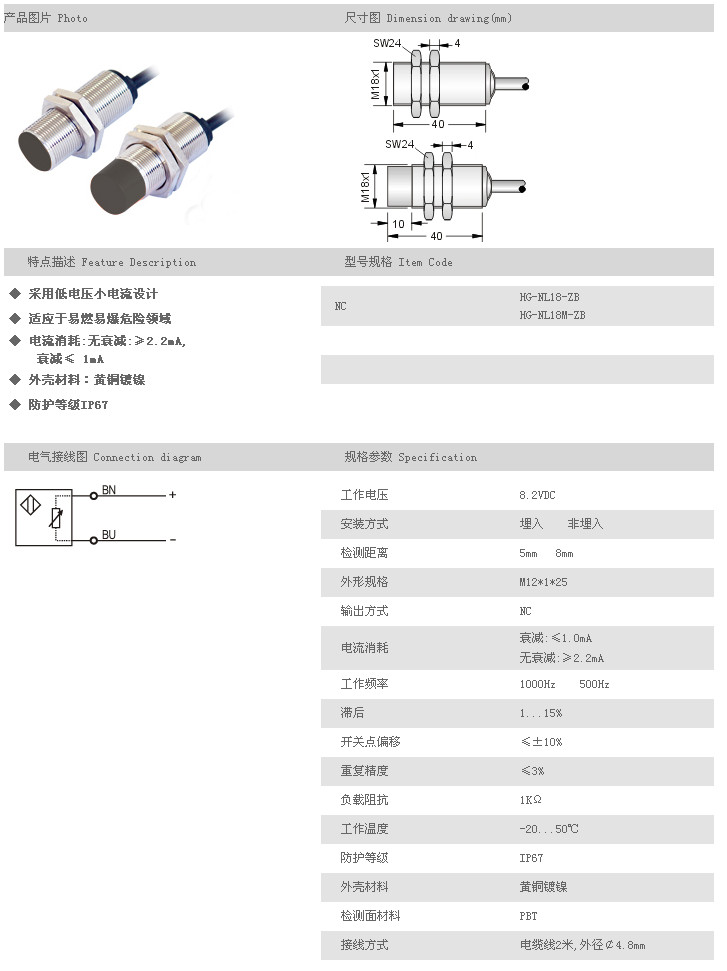 L18防爆型接近開關(guān) HG-NL18-ZB,HG-NL18M-ZB,