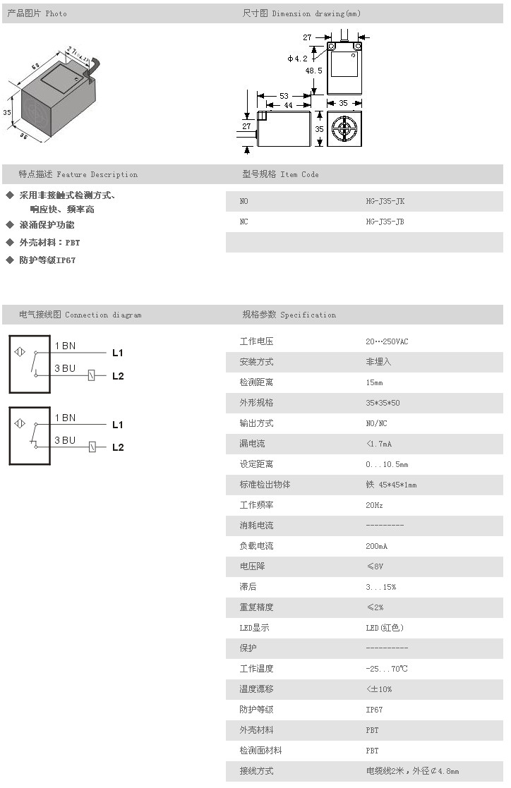 方型接近開關(guān) HG-J35-JK,HG-J35-JB,