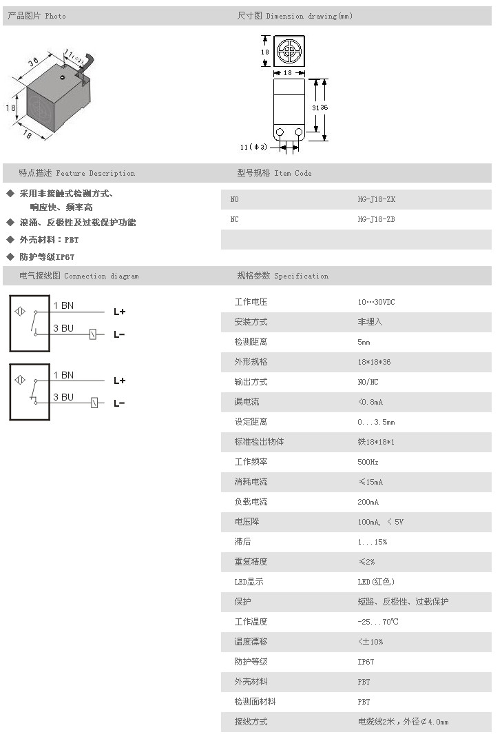 方型接近開關(guān) HG-J18-ZK,HG-J18-ZB,