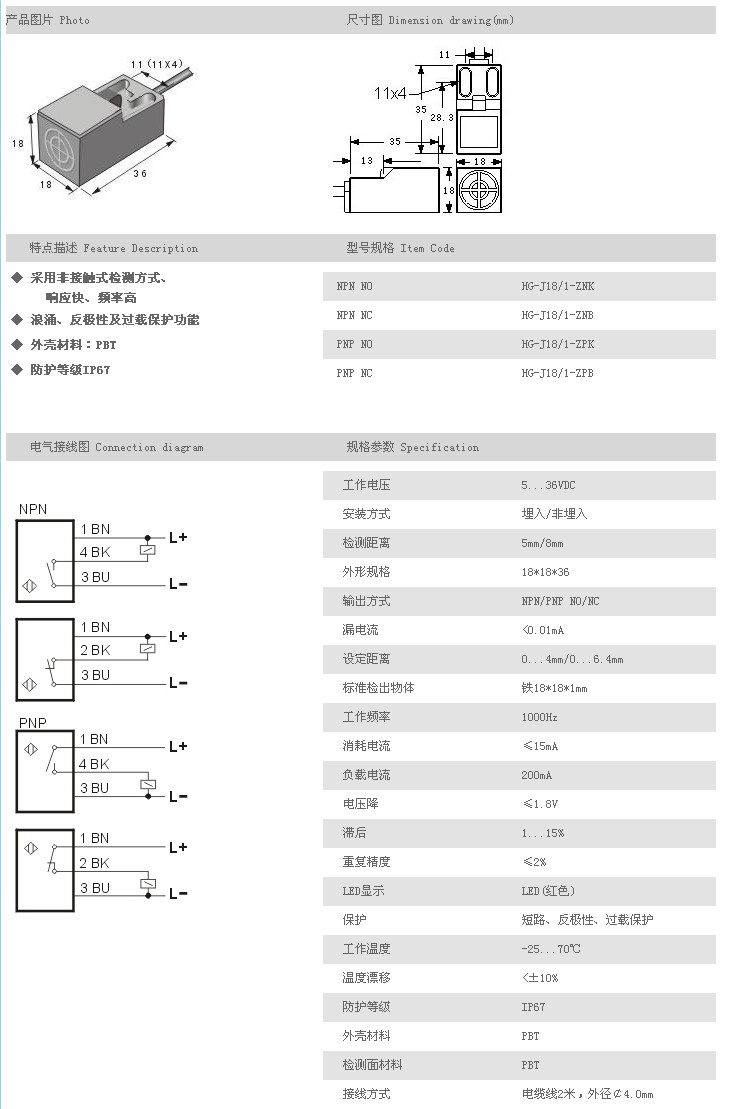 J18/1方型接近開關(guān) HG-J18/1-ZNK,HG-J18/1-ZNB,HG-J18/1-ZPK,HG-J18/1-ZPB,
