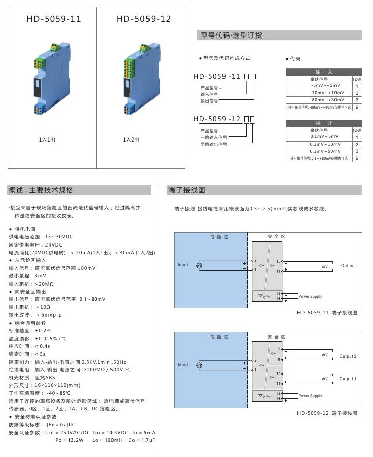 HD-5059-11,HD-5059-12,直流毫伏信號輸入隔離安全柵