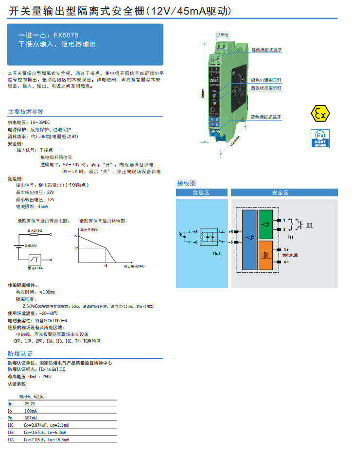 EX5078,開(kāi)關(guān)量輸出型隔離式安全柵