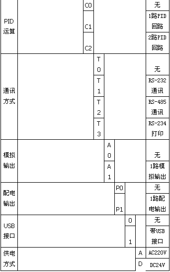 熱電阻:Pt100、Cu50、BA1、BA2。 |