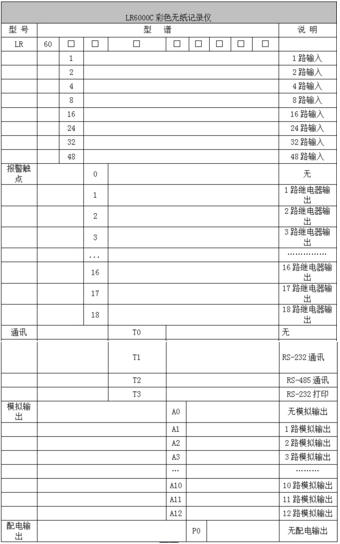 LR6000C系列彩色壓力記錄儀48路(不含報警,變送等其它功能)萬能輸入(可組態(tài)選擇輸入:標(biāo)準(zhǔn)電壓、標(biāo)準(zhǔn)電流、熱電偶、熱電阻、頻率、毫伏等)??蓭?8路報警輸出,12個變送輸出,RS232/485通訊接口,以太網(wǎng)接口,微型打印機接口和USB接口,SD卡插座;可提供傳感器配電;具有強大的顯示功能,實時曲線顯示,歷史曲線追憶,棒圖顯示,報警列表顯示。人性化的外觀設(shè)計、完美的功能體現(xiàn)、可靠的硬件品質(zhì)、精湛的制造工藝,使LR6000C具有更高的性能價格比。
