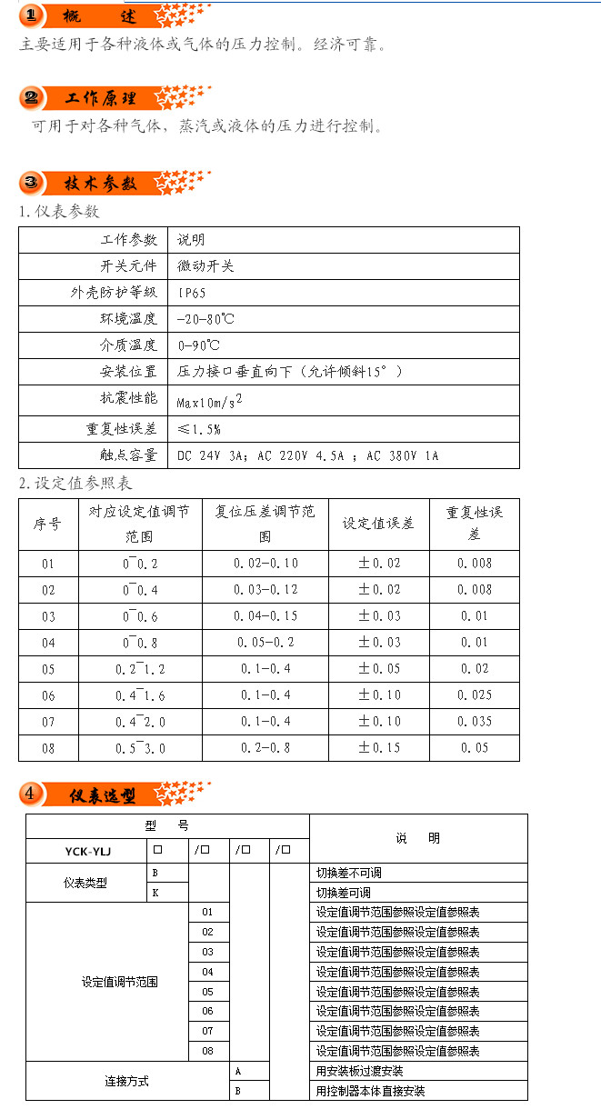 YCK-YLJB,YCK-YLJK,YCK-YLJ,經(jīng)濟(jì)壓力控制器