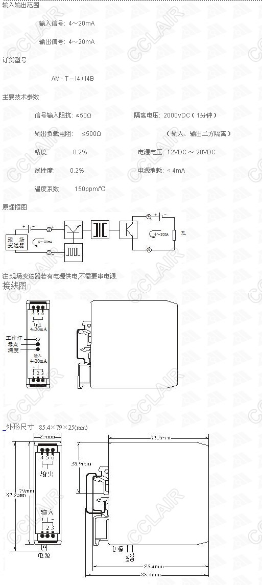 AM-T-I4/I4B,二端隔離模塊