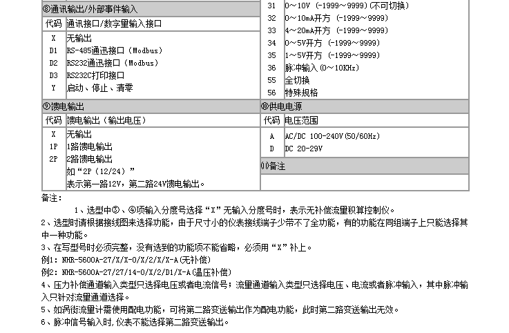 NHR-5600系列流量積算控制儀針對現(xiàn)場溫度、壓力、流量等各種信號進(jìn)行采集、顯示、控制、遠(yuǎn)傳、通訊、打印等處理,構(gòu)成數(shù)字采集系統(tǒng)及控制系統(tǒng),適用于液體、一般氣體、過熱蒸汽、飽和蒸汽等的流量積算測量控制。 |