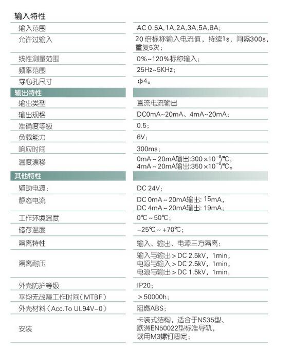 輸入規(guī)格:AC 0-8A范圍可選