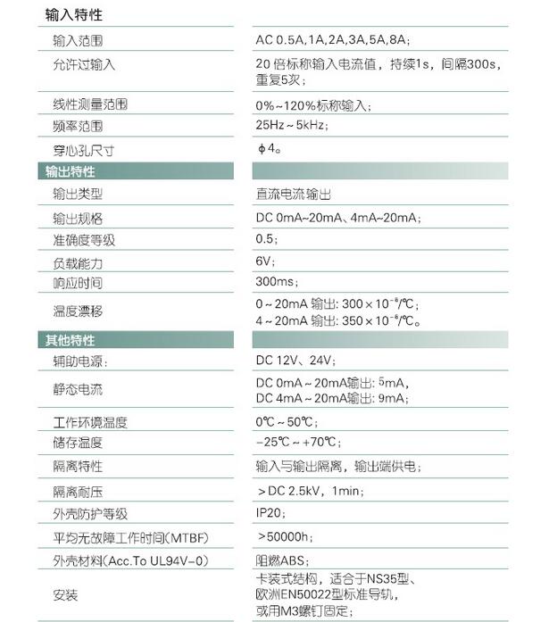 輸入規(guī)格:AC 0-8A范圍可選