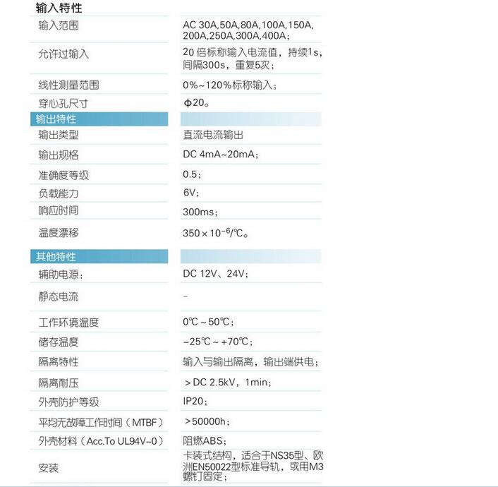 輸入規(guī)格:AC 0-400A范圍可選