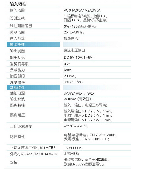 輸入規(guī)格:AC 0-5A范圍可選