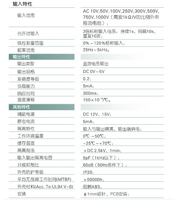 輸入規(guī)格:AC 10V-1000V范圍可選(需按1kΩ/V的比例外串限流電阻)
