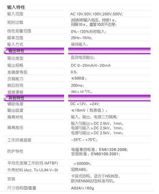 輸入規(guī)格:AC 10V~500V范圍可選