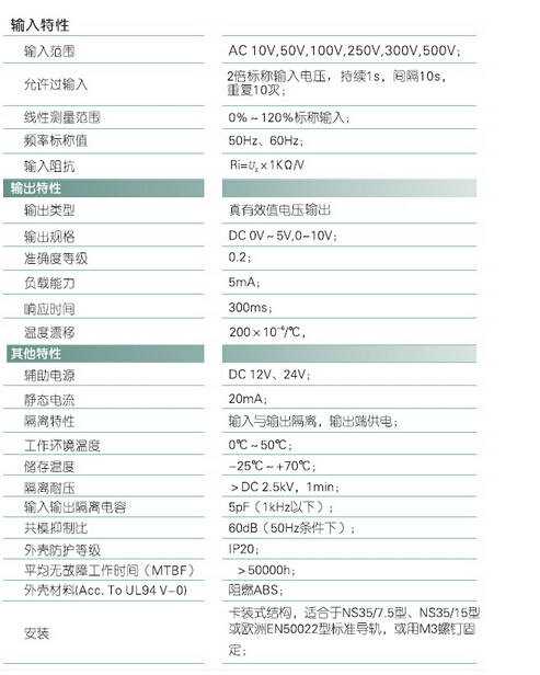 輸入規(guī)格:AC 10V~500V范圍可選
