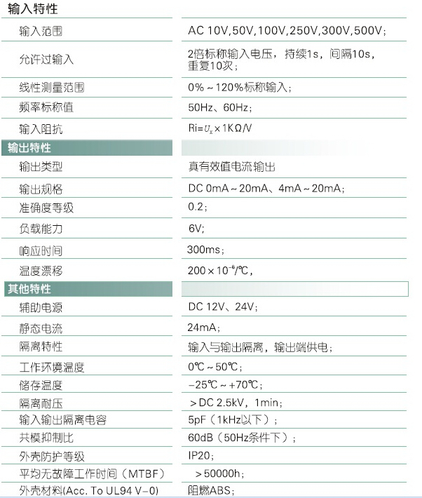 輸出規(guī)格:真有效值輸出DC 4-20mA,0-20mA