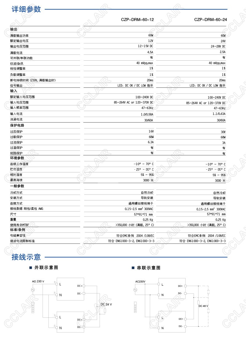 CZP-DRM-60-24 導(dǎo)軌型開(kāi)關(guān)電源60W/24V輸出