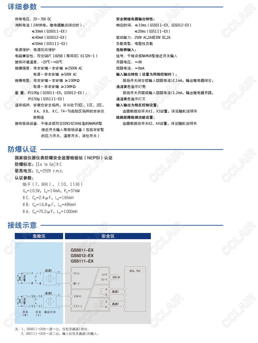 GS5011-EX 一進(jìn)一出 開(kāi)關(guān)量輸入,繼電器輸出隔離式安全柵