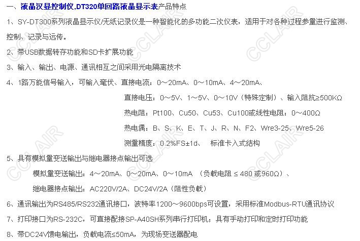 SY-DT320Y,SY-DT320R,SY-DT320YT,SY-DT320RT,SY-DT320YS,DT320單回路液晶顯示控制儀