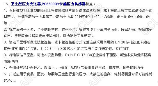 SY-PG6300QY-1MPa(卡箍連接、輸出DC4~20mA) SY-PG6300QY-1MPa-i(輸出 4~20mA、帶本安防爆) SY-PG6300QY-1MPa-M2(輸出4~20mA、帶數(shù)字顯示) SY-PG6300QY-1MPa- d(輸出 4~20mA、帶隔離防爆)