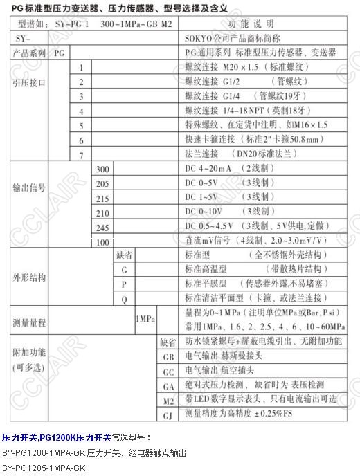 SY-PG1200-1MPA-GK,SY-PG1205-1MPA-GK