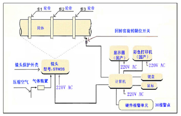 本系統(tǒng)可以持續(xù)監(jiān)視工業(yè)中回轉(zhuǎn)窯表面的溫度分布。能快速發(fā)現(xiàn)回轉(zhuǎn)窯表面異常溫度以及窯爐燃燒、窯內(nèi)耐火材料脫落等狀況,并提供快速的報(bào)警功能。測量得到的溫度數(shù)據(jù)和回轉(zhuǎn)窯旋轉(zhuǎn)情況可以被輸送并保存到計(jì)算機(jī)。3D、2D圖像和各種數(shù)據(jù)經(jīng)過處理后顯示在顯示器上。