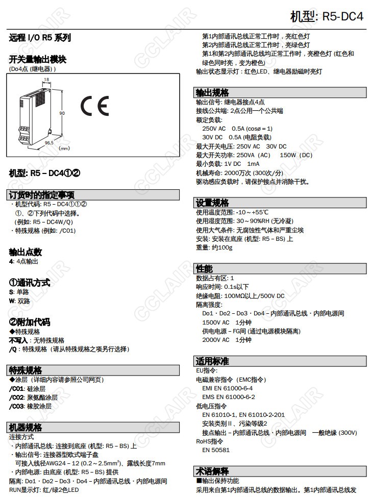 R5-DC4/R5T-DC4,R5-DC4W/C01,R5T-DC4W/C01, Do 4點(diǎn) 接點(diǎn)輸出模塊 接點(diǎn)輸出模塊 R5-DC4S/C01,R5T-DC4S/C01