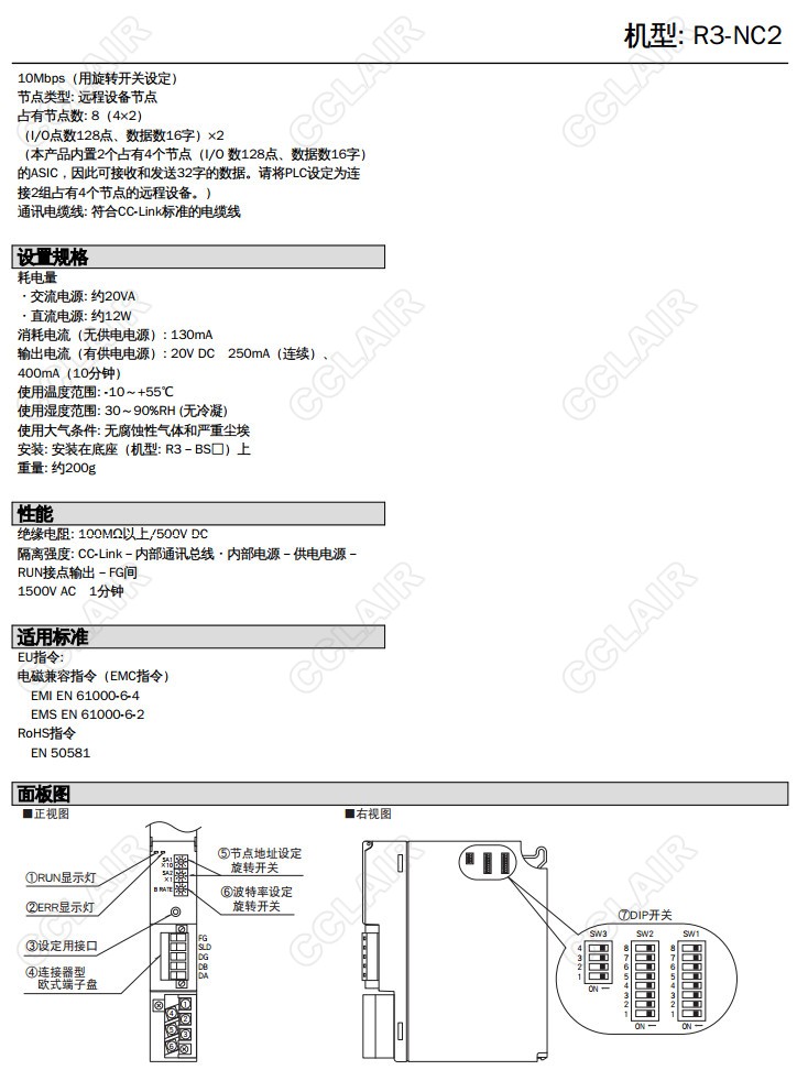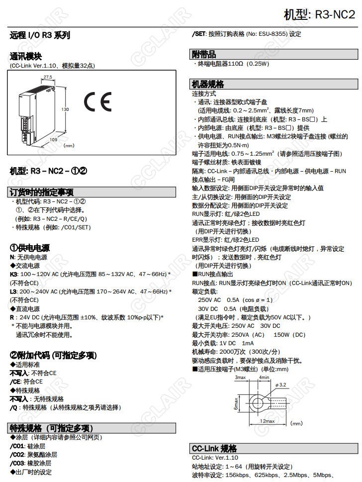 R3-NC2,R3-NC2-R/CE/Q,R3-NC2-N,R3-NC2-K3,CC-Link Ver.1; 模擬量信號 32點(diǎn)通訊模塊