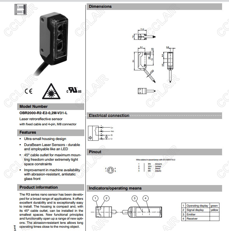 OBR2000-R2-E0-L,OBR2000-R2-E2-0,2M-V3-L,OBR2000-R2-E2-0,2M-V31-L,反射板型傳感器