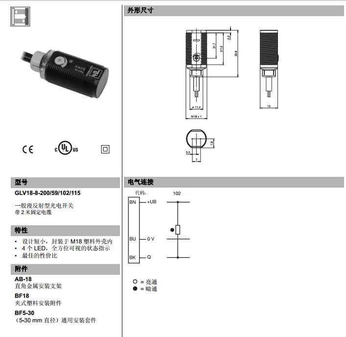 GLV18-8-200/59/102/115,漫反射型傳感器