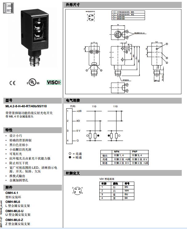 ML4.2-8-H-40-RT/40b/95/110,漫反射型傳感器