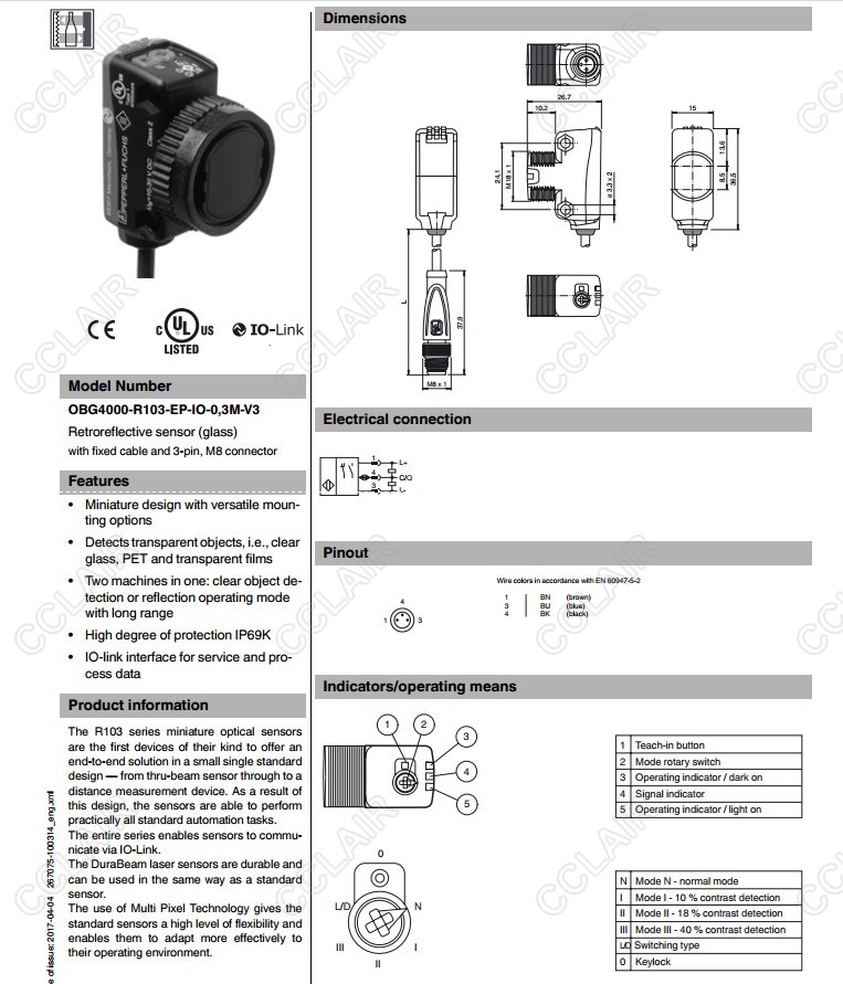 OBG4000-R103-2EP-IO-0,3M-V31,OBG4000-R103-EP-IO-0,3M-V3,反射板傳感器(玻璃)