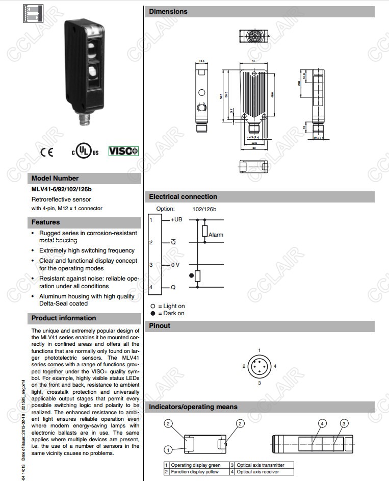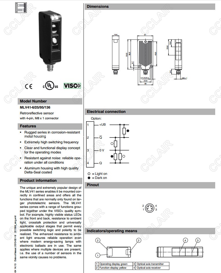 MLV41-6/25/95/136,MLV41-6/82b/92/103,MLV41-6/92/102/126b,反射板型傳感器