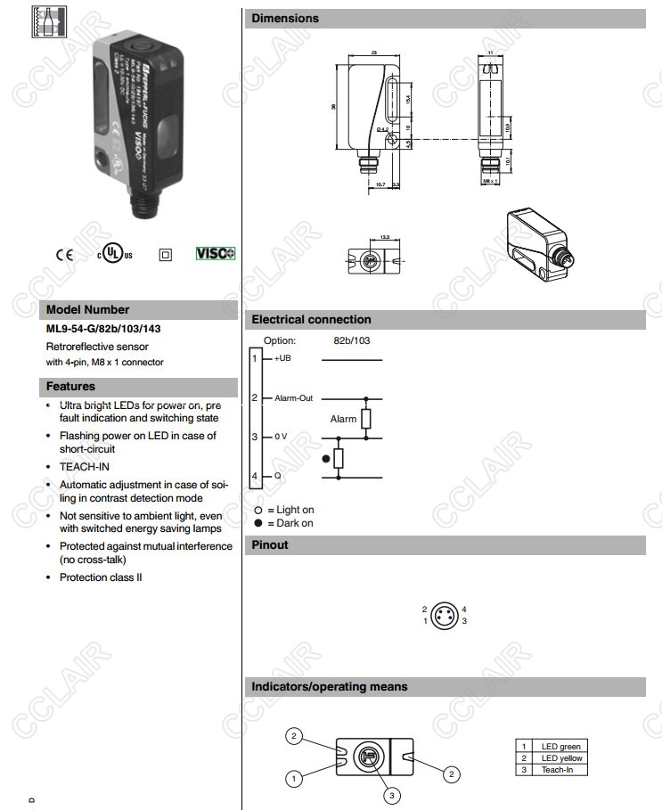 ML9-54-G/82b/103/143,反射板型傳感器