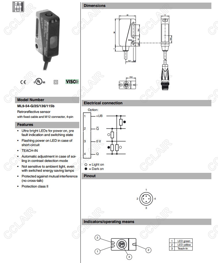 ML9-54-G/25/136/115,ML9-54-G/25/136/115a,ML9-54-G/25/136/115b,反射板型傳感器