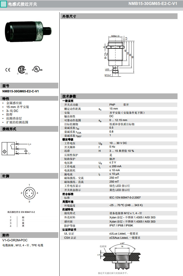 NMB15-30GM65-E2-C-V1感應式傳感器