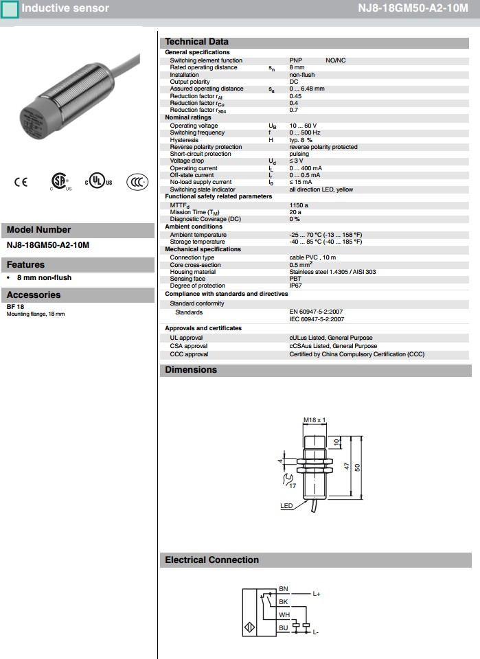 NJ8-18GM50-A2,NJ8-18GM50-A2-10M感應式傳感器