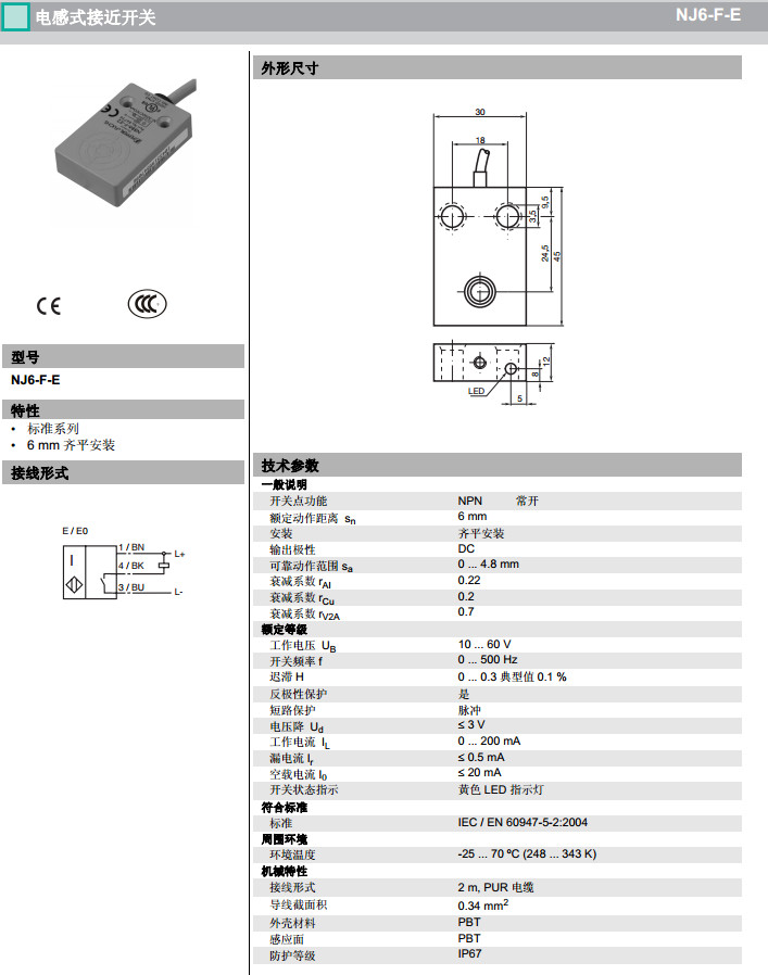 NJ6-F-E,NJ6-F-E2,NJ6-F-E2-5M感應(yīng)式傳感器