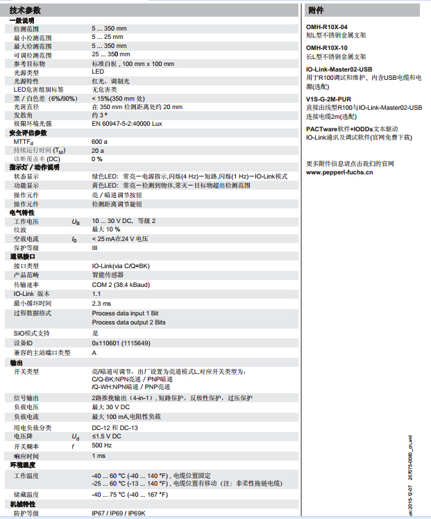 OBT350-R100-2EP-IO,漫反射型傳感器